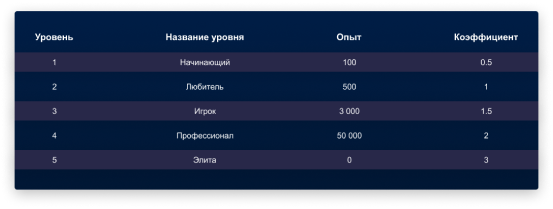 One can also view the loyalty system, find out own level on the site, correlate it with a digital indicator of experience.